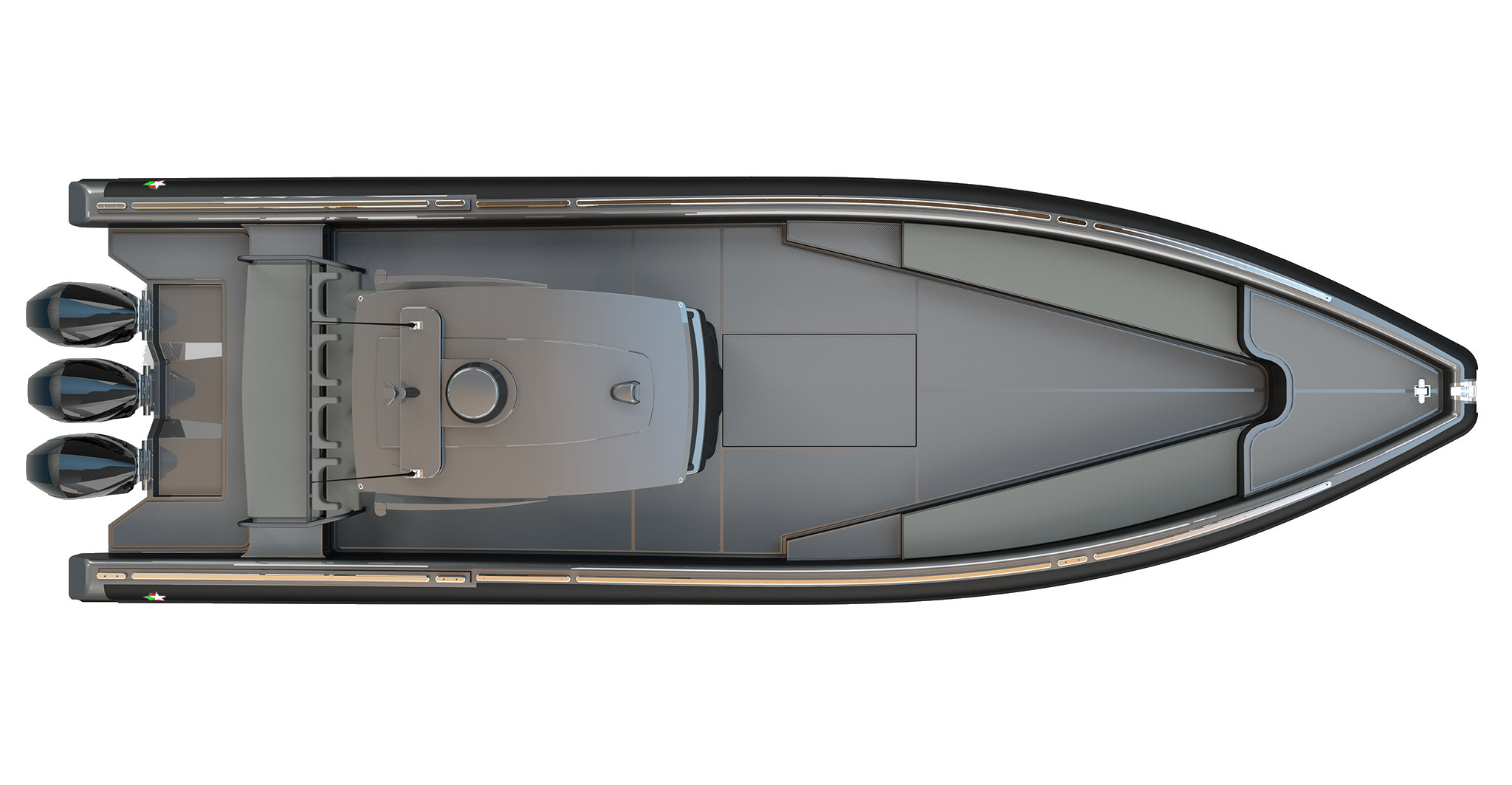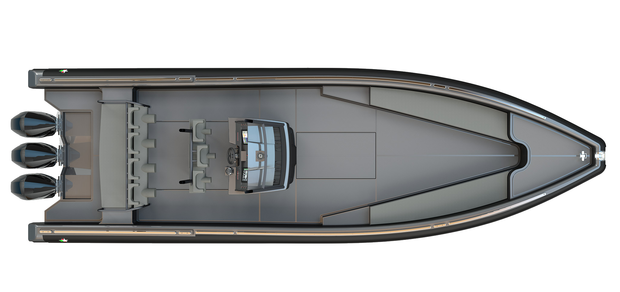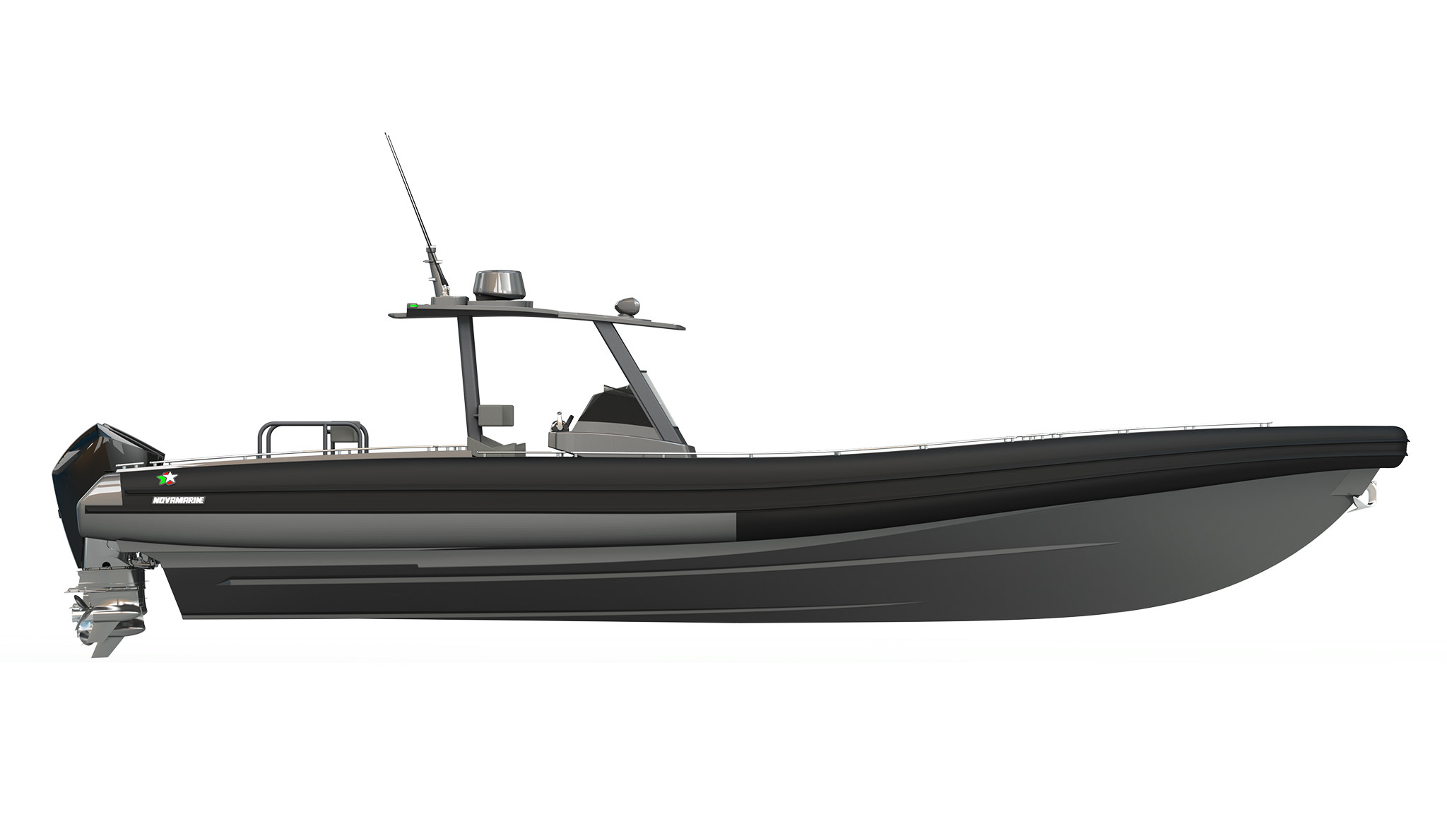 The new 120 HD is the sportiest and most dynamic model in the Novamarine line. It is derived from the same hull as the multi-certified Novamarine Professional 120 and offers exceptional manoeuvrability, stability, and safety. With aggressive lines and spacious, minimalist interiors, it provides endless possibilities for arranging seats and sun loungers, making it a unique model. Imposing in shape but austere in content, the 120 HD is powered by three outboard engines of up to 400 hp. It surges through the water, reaching speeds of up to 52 knots, ensuring efficiency and fun with complete tranquillity.