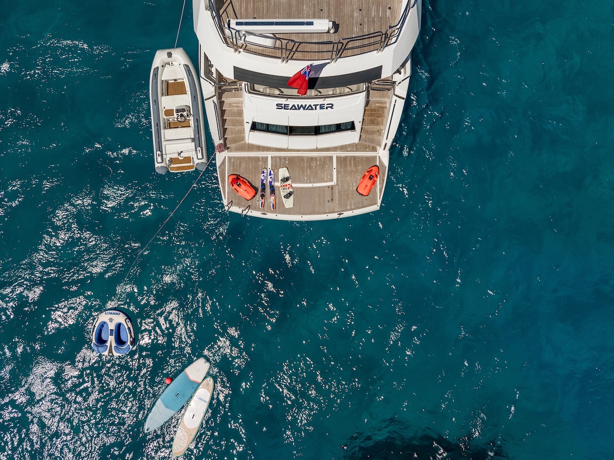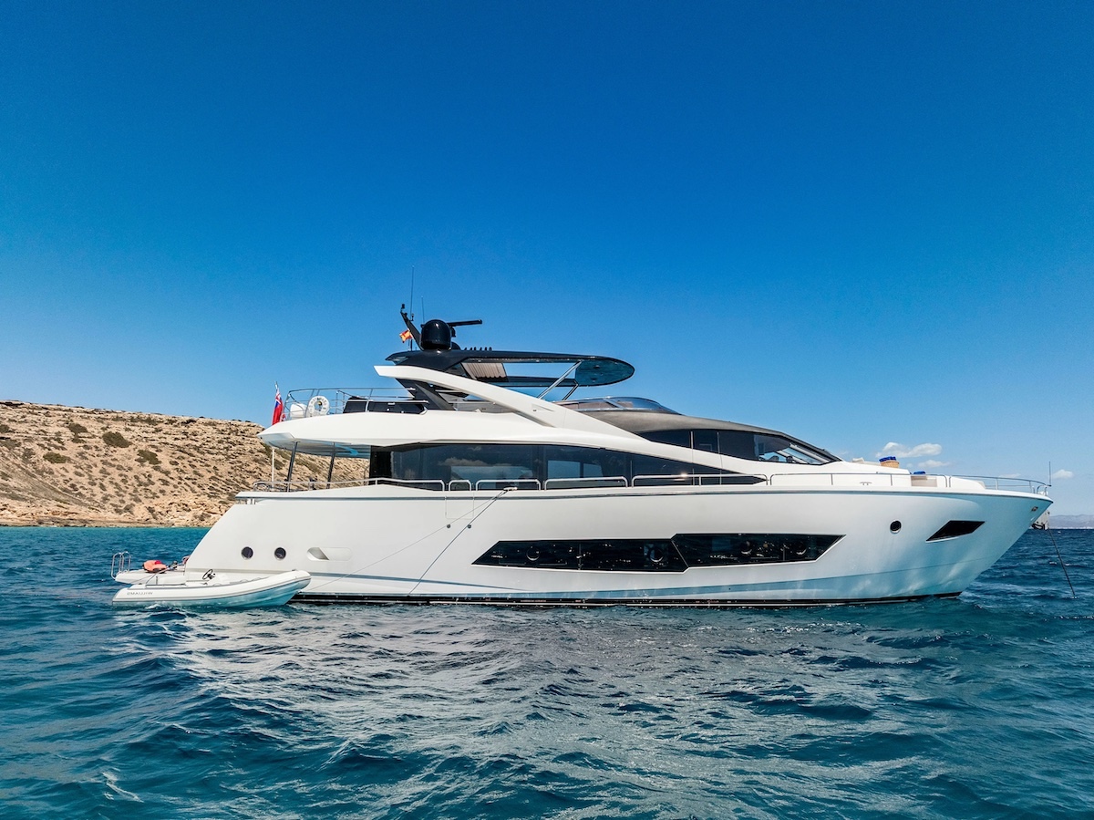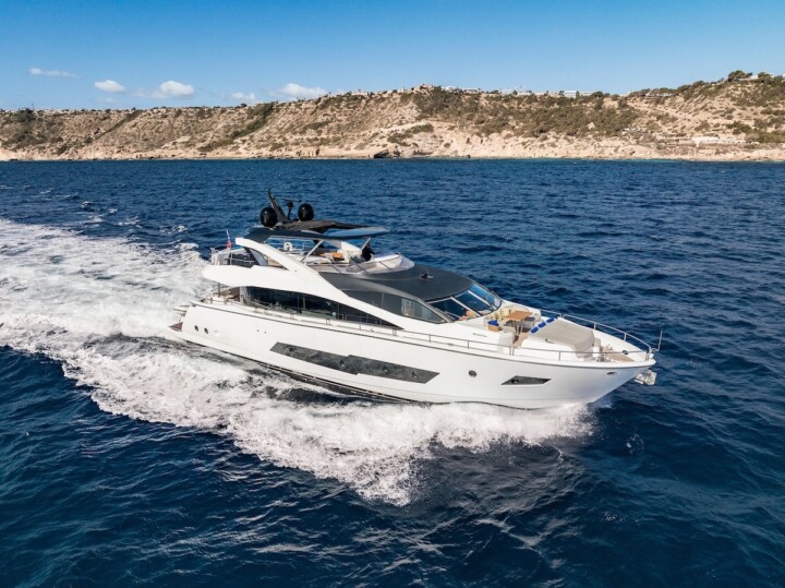 M/Y SEAWATER II is a Sunseeker 86 built in 2020, combining contemporary design with outstanding comfort. With 26.3 metres of length, she offers generous indoor and outdoor spaces ideal for cruising the Balearic Islands in style. She accommodates up to 8 guests in four well-appointed cabins, all with ensuite bathrooms. Spacious decks provide the perfect setting for sunbathing, al fresco dining and enjoying panoramic sea views. A hydraulic swim platform allows easy access to the water for swimming and water activities. Operated by a professional crew, SEAWATER II delivers a seamless and personalised charter experience throughout the Balearics. Contact us for more information and availability