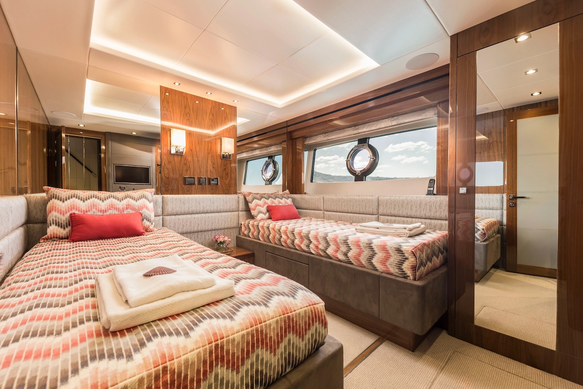 BuiltSunseeker yachts - 2020ModelYacht 86Length26.30 mBeam6.47 mCruising speed17 knotsMax. speed22 knotsAccommodation2 double + 2 twin convertible to doublesGuests12 + crew (day) - sleep 8Cabins4 cabins + crew Crew4 LocationMallorca, SpainRate per dayStarting from 8,500 €/day (Excl. VAT)